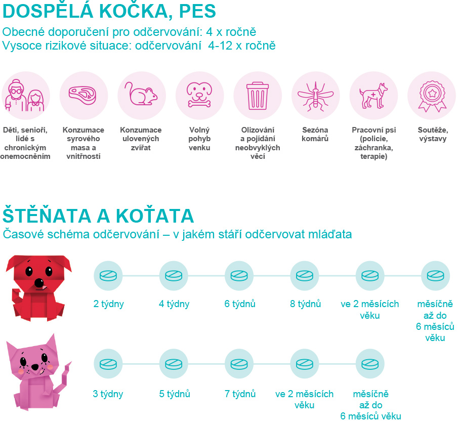 | Doporučená frekvence odčervení | Odčervovat podle způsobu života vašeho psa |