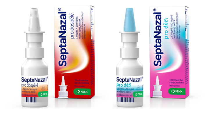 Septanazal pro dospělé 1 mg/ml + 50 mg/ml nosní sprej, roztok a Septanazal pro děti 0,5 mg/ml + 50 mg/ml nosní sprej, roztok jsou přípravky k nosnímu užití. Čtěte pečlivě příbalové letáky.